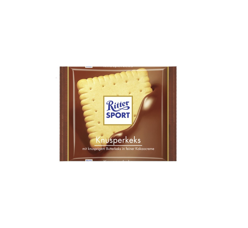In unserer RITTER SPORT Knusperkeks steckt ein echtes Unikat ein quadratischer Butterkeks. Speziell für diese Tafel wird er mit einer