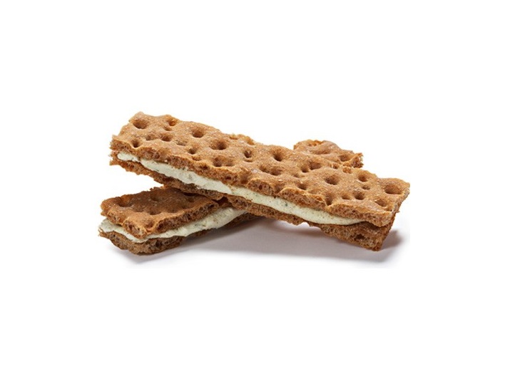 Sandwich Käse & Schnittlauch ist ein Knäckebrot-Sandwich mit Vollkornroggen mit einer Füllung mit Käse- und Schnittlauchgeschmack.