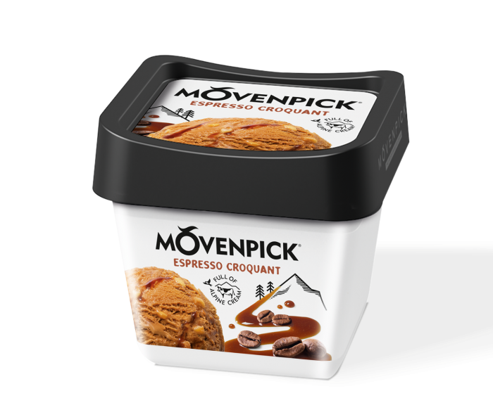 Eine stark verbesserte Interpretation der klassischen Kaffeeglacé, die auf mit Espressoaroma verfeinerter Schweizer Ice Cream basiert. Eine köstliche Kaffeesauce intensiviert das Geschmackserlebnis, während caramelisierte Haselnussstückchen für einen knusprigen Touch sorgen. Ein weiterer grosser Renner. Geniessen Sie diese Kreation ohne künstliche Zusatz- und Farbstoffe.